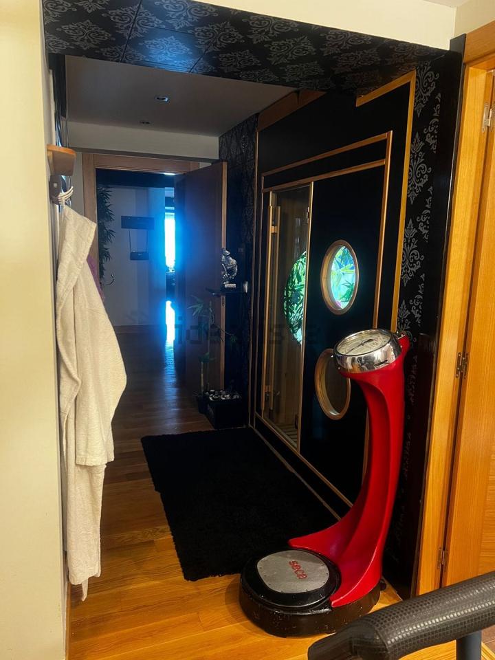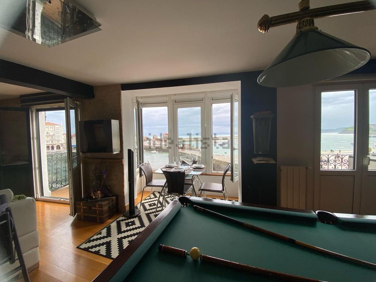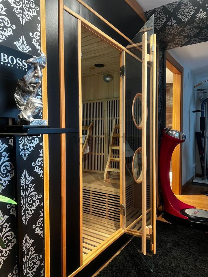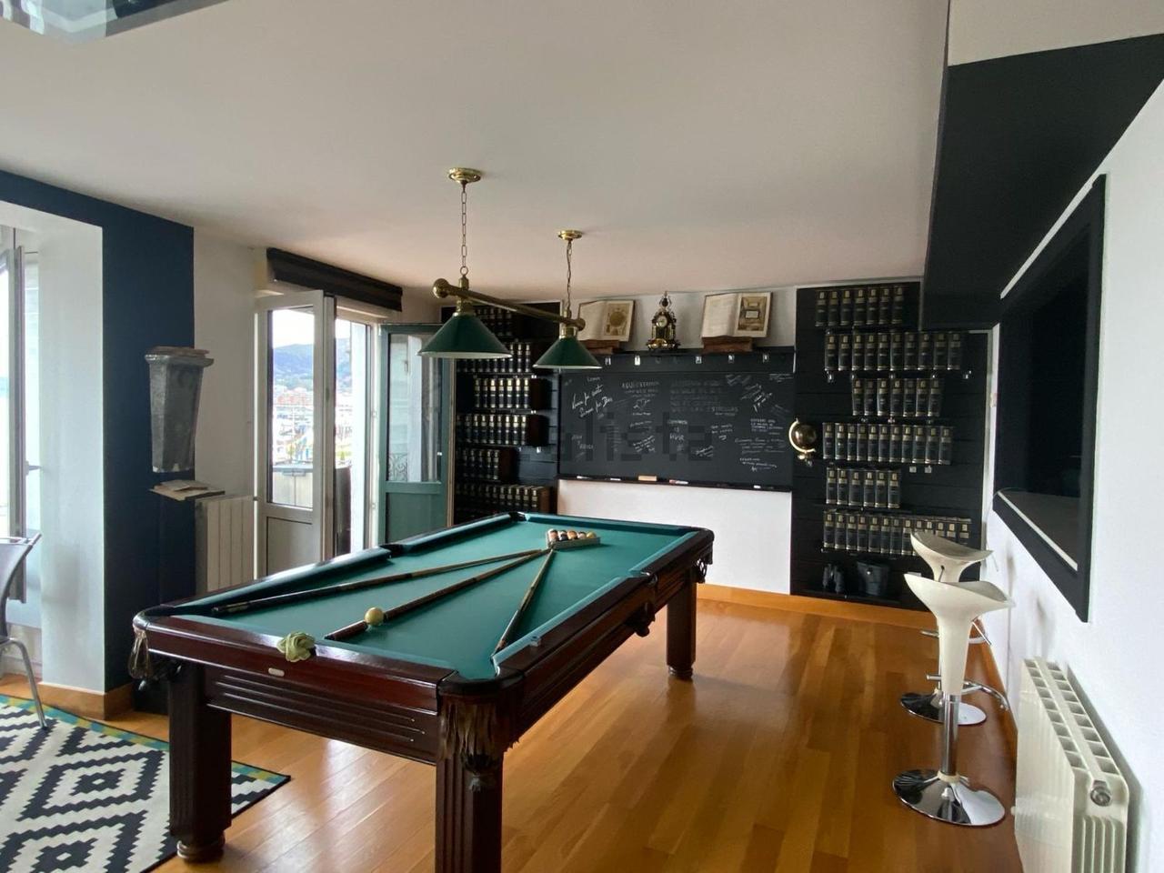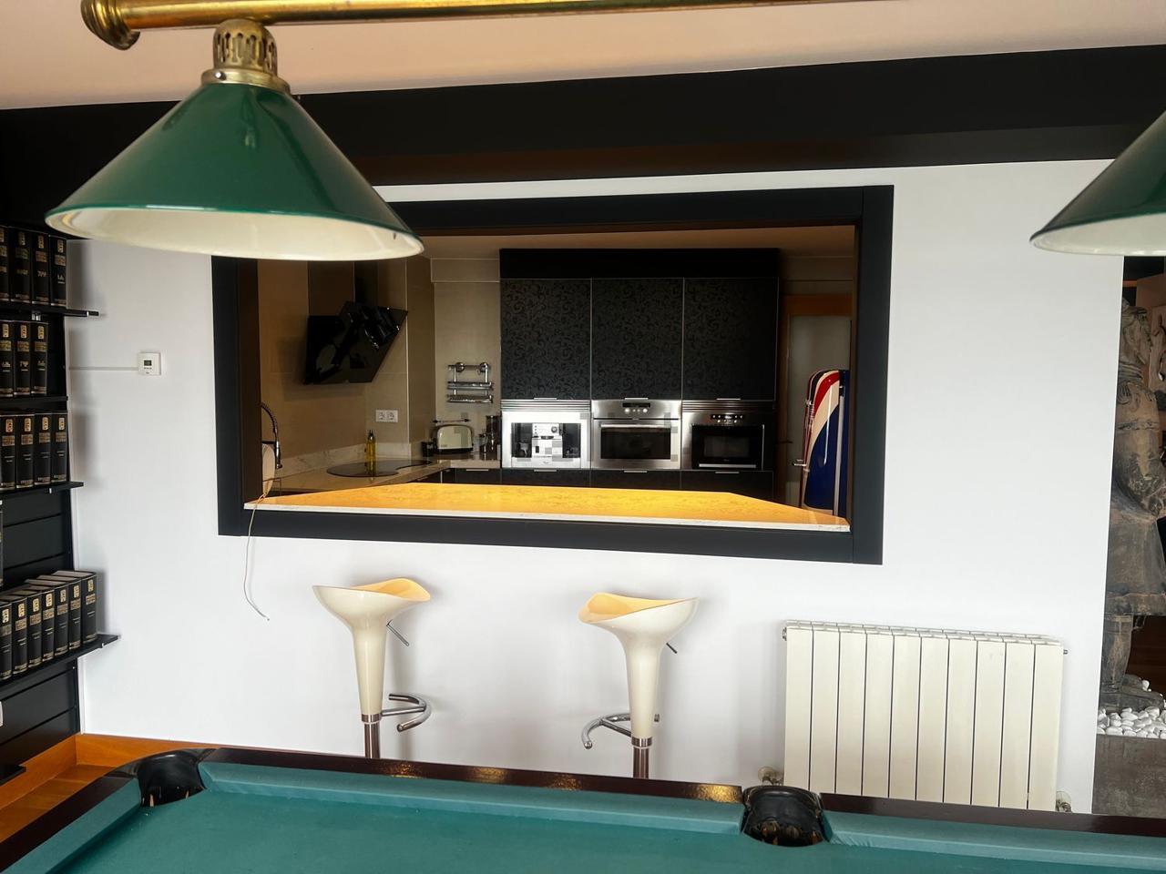 Con una superficie de 115 m², la propiedad ofrece una distribución cómoda y luminosa, cuenta con dos balcones y un acogedor mirador, dos dormitorios, dos baños completos equipados con sauna, una cocina moderna totalmente equipada y un amplio salón de aproximadamente 55 m², presidido por una elegante mesa de billar antigua que aporta carácter al espacio.