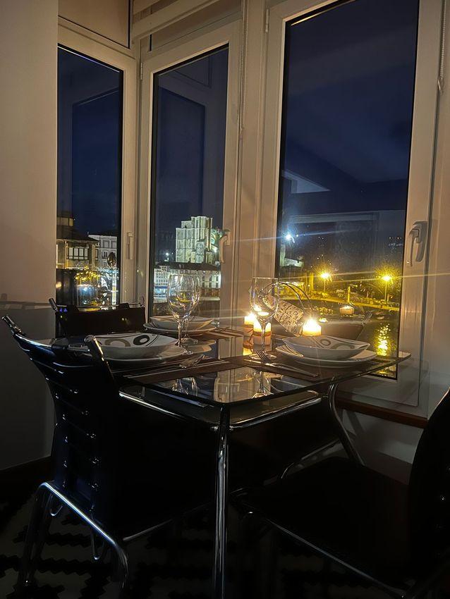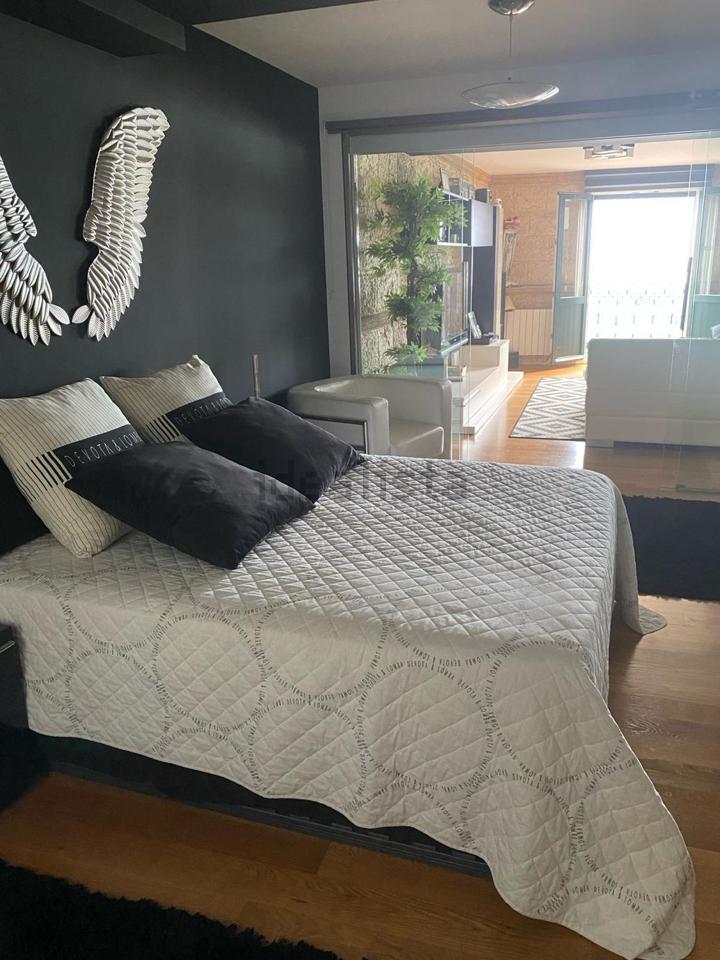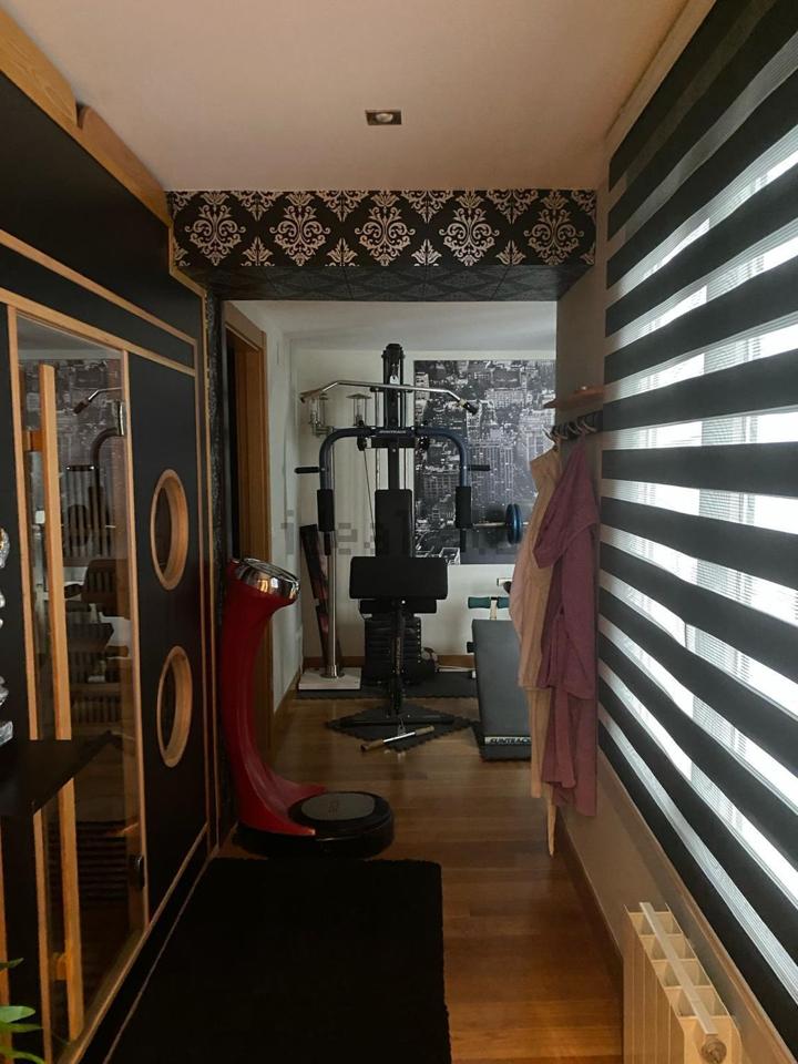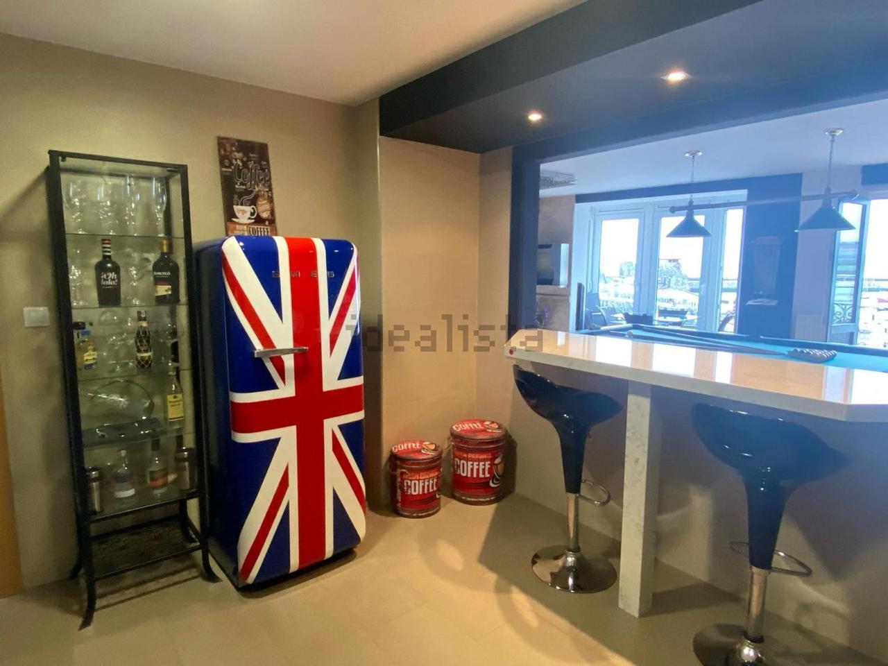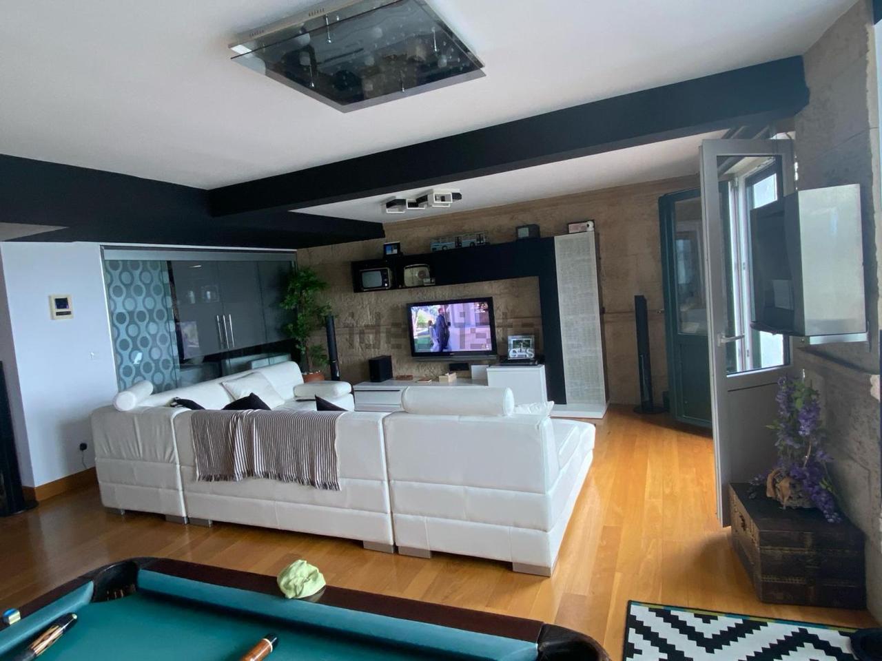 Con una superficie de 115 m², la propiedad ofrece una distribución cómoda y luminosa, cuenta con dos balcones y un acogedor mirador, dos dormitorios, dos baños completos equipados con sauna, una cocina moderna totalmente equipada y un amplio salón de aproximadamente 55 m², presidido por una elegante mesa de billar antigua que aporta carácter al espacio.